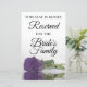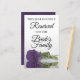 Ces cartes de table géantes sont conçues pour informer vos invités quels sièges sont réservés à la famille de la mariée. Le design élégant présente une rose de couleur violet améthyste se reflétant dans une piscine d'eau avec des vagues et des ondulations. Le texte personnalisable indique : Cette place est réservée à la famille de la mariée.