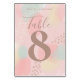 Améliorez l'esthétique de votre réception de mariage avec notre envoûtante plaque de numéro de table, mettant en valeur l'art moderne rêveur dans une palette pastel charmant. Les teintes douces de pêche et de rose se mêlent harmonieusement aux accents de jaune ensoleillé, de vert verdoyant et de bronze subtil, créant une ambiance fantaisiste mais sophistiquée. Guidez vos invités sans effort à travers votre célébration avec ces envoûtants panneaux de numéro de table, en complément parfait de l'atmosphère romantique de votre journée spéciale. Personnalisez facilement avec vos détails. —L'Olive tachetéMC sur Zazzle