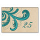 Carte de table Mariage élégant et sucré avec un joli papier kraft look arrière - plan et un design tourbillon fleuri en turquoise. Cette carte de numéro de table moderne mais rustique est facile à customiser avec le ou les numéros de table appropriés. Cliquez sur "Customiser" pour trouver d'autres options de personnalisation.