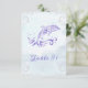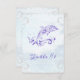 Nommez vos tables de réception avec une carte de table violette Dolphin Wedding Réception. Le design de la carte de table comprend un dauphin métallique contre un arrière - plan muet des vagues de l'océan orné d'élégants rouleaux. Papier à lettres mariage supplémentaire disponible avec cette conception aussi.