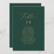 Ces délicates cartes de sièges en or et en vert sont parfaites pour un mariage moderne. Le design minimaliste romantique présente une belle et élégante typographie de champagne jaune doré sur un arrière - plan vert émeraude à l'allure simple et épurée. La carte s'imprime à l'avant et à l'arrière (double face).