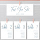Dusty Blue Whimsical Script Chic Mariage Numéro de table Seating Charts Carte avec nom d'invité. Tous les textes sont pré-arrangés pour que vous personnalisiez facilement et rapidement avec vos propres détails.
