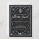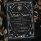 Ajoutez une touche de magie à votre enterrement de vie de jeune fille ! Cette invitation présente un design inspiré des tarots avec un cadre ovale élégant, un soleil et une lune radieux en argent sur fond noir. Parfait pour une célébration aussi enchanteresse que la mariée ! VEUILLEZ NOTER : Le design sur cette invitation n'est PAS DU VRAI FEUILLE D'ARGENT et est imprimé en couleurs plates.