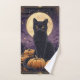 Carte de tarot à thème Halloween design avec un chat noir, pleine lune et citrouille.