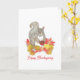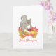 Souhaitez une bonne fête de Thanksgiving à vos amis et à votre famille ou envoyez simplement une carte d'automne avec cette adorable aquarelle originale représentant un doux écureuil gris tenant une petite tarte aux noix de pécan (son préféré !) et assis dans un tas de feuilles colorées d'automne.