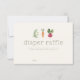 Rendez votre fête prénatale encore plus amusante (et pratique !) avec ce modèle de carte de tombola de couches adorable, orné de douces illustrations aquarelles de légumes - cosses de pois, carottes et betteraves. Le design moderne minimaliste avec un texte vert terreux est parfait pour une célébration sur le thème botanique, jardin ou de la ferme à la table. Entièrement personnalisable, vous pouvez facilement mettre à jour le texte pour qu'il corresponde aux détails de votre événement. Les invités n'ont qu'à apporter un paquet de couches, de n'importe quelle taille, et participer pour gagner un prix - une façon attentionnée et ludique d'aider les parents à s'approvisionner. Parfait pour être imprimé et inclus avec les invitations ou affiché lors de votre fête.