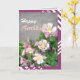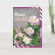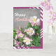 A very beautiful and romantic birthday greeting card with pink and white columbines.