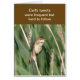 Carte avec photo de la paruline de roseau et mots 'Les tweets de Carl étaient fréquents mais difficiles à suivre' de New Forest Pics
