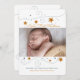Une carte de vœux de vacances avec un fond blanc, des étoiles dorées et des volutes pointillées, illustrée de célébrités. (<a href="https://www.freepik.com/free-photos-vectors/background">Fond vectoriel créé par starline - www.freepik.com</a>). (<a href="https://www.freepik.com/free-photos-vectors/baby">Photo de bébé créée par freepik - www.freepik.com</a>). <br/><br/>La carte est facile à personnaliser avec votre texte, police, couleur de police, options de forme de papier et choix parmi six types de papier.<br/><br/>Pas exactement ce que vous cherchez ? Tous nos produits peuvent être conçus sur mesure pour répondre à vos besoins sans frais supplémentaires.<br/><br/>Contactez-nous simplement à askcottonlamb@gmail.com.<br/><br/>Produits coordonnés disponibles : il suffit de nous demander !
