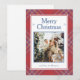 Cette carte de vacances présente un motif à carreaux de couleur chaude (également connu sous le nom de plaid ou tartan) pour donner une atmosphère de Noël et de vacances cosy. Le style traditionnel est poursuivi avec l'utilisation de polices classiques et de lignes épurées pour une esthétique festive et prépa. Texte et photo entièrement personnalisables !