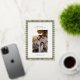 Carte de vacances à motif argyle en vert rustique avec emplacement pour 1 photo et détails en feuille d'or