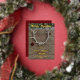 Des bois festifs ornés de boules sur un fond en bois rustique avec du lierre qui traîne au-dessus. Il suffit d'ajouter le nom de votre famille et vos vœux de vacances - véritable feuille d'aluminium