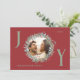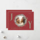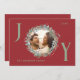 Envoyez des voeux de vacances chaleureux avec cette élégante carte de Noël Joy avec un arrière - plan rouge croustillant et un feuillage vert et rouge fabuleux encadrant votre photo de famille. Les lettres "J" et "Y" sont écrites en vert sage, ajoutant une touche joyeuse au design. Le "O" abrite la photo de famille dans la couronne. La carte est personnalisable avec les détails de votre famille et inclut le message de Noël parfait à l'intérieur, ce qui en fait une façon attentive et personnelle de célébrer la saison.