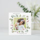 Cette carte de vœux carrée présente des baies rouges peintes à l'aquarelle, des branches de pin, de l'eucalyptus et des feuilles vertes avec les mots « Joyuses Fêtes ». Personnalisez-la en changeant l'image avec votre propre photo et texte.