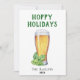 Verre à bière peint et grappe de houblon, carte drôle "Hoppy Holidays".