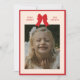 Carte de vacances avec un nœud rouge classique et une bordure.