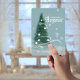 La teinte bleu-vert d'une forêt secrète, où les arbres sont magiquement décorés pour les vacances. Envoyez vos salutations avec une telle photo avec une feuille brillante pour les ornements et la neige.