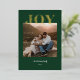 L'avant de la carte est minimaliste et moderne, avec un fond blanc qui permet au mot « Joie » de prendre toute la place. Le mot « Joie » est écrit dans un beau texte botanique. La simplicité du design et le choix de la police créent un look harmonieux et accrocheur. Le dos de la carte est dédié à vos précieux souvenirs de vacances. Quatre emplacements pour photos vous permettent de mettre en valeur vos moments préférés de l'année.
