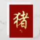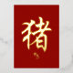 Célébrez les personnes nées dans l'Année du Cochon. Cette élégante carte en feuille d'or a un design simple du caractère calligraphie pour cochon, avec un petit texte en anglais. Vous pouvez cliquer pour modifier la conception et ajouter un message personnalisé.