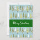 Conception de carte unique avec des arbres de Noël sur le devant. Les mots peuvent être changés à l'intérieur. Les couleurs sont le bleu, le blanc et le vert. Merci à Hungryjpeg pour certains des éléments du design.