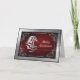 Personnalisez cette carte de Noël pour cheval unique "Une pièce unique" ! Elle comporte une silhouette de cheval argenté sur fond argent et rouge avec une bordure décorative argent et noir !