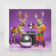 Célébrez la saison avec une touche funky ! Cette carte de vacances présente des rennes groovy en tenue de disco, faisant la fête sous un miroir rotatif avec un DJ renne qui fait tourner les morceaux. Parfait pour envoyer des vibrations joyeuses et amusantes !