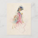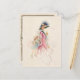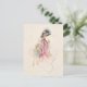 Jolie mère victorienne en robe bleue et bonnet à plumes souriant à sa fille tout en faisant des achats. Cette charmante étude est peinte dans un style aquarelle pastel. Le dos comporte un message éditable, des champs de texte et un graphique floral facultatif avec un fond complémentaire personnalisé.