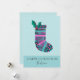 Un bas de Noël à motifs amusants en rose et turquoise avec un bouquet de saint. Le design est personnalisé avec un nom et un accueil, qui peuvent être changés tous deux. le design est assis sur un arrière - plan bleu clair à l'avant et à l'arrière et cela peut aussi être changé.