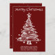 Carte de Noël rouge et blanc avec un joli plaisir fantaisiste et un accueil festif.