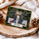 Célébrez la saison avec cette carte photo unique encadrée de style rustique et élégant, ornée de branches de pin et de pommes de pin peintes à l'aquarelle. Un fond vert foncé associé à une bordure rouge canneberge riche crée un cadre chaleureux et festif pour votre photo de famille préférée. Un ruban ivoire crème traverse le bas du design avec un texte personnalisable pour votre vœu de Noël et un espace en dessous met en valeur le nom de votre famille. Alliant le charme botanique à l'élégance intemporelle des fêtes, cette carte est parfaite pour envoyer des vœux sincères accompagnés d'une photo à vos proches. Faisant partie de la collection Rustic Winter Watercolor Pine, elle se marie parfaitement avec les étiquettes d'adresse de retour, les autocollants et la papeterie assortis pour créer une cohérence visuelle pour la saison. Parfaite pour les