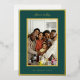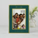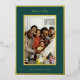 Célébrez les vacances dans un style intemporel avec cette carte de voeux de Noël élégante. Doté d'un riche arrière - plan vert émeraude et de doubles bordures dorées estampillées, l'une autour de la carte et l'autre autour de votre photo personnalisée, ce design dégage chaleur et sophistication. Le dessus de la carte indique "Paix et joie" en papier doré luxueux, tandis que l'espace feuille inférieur pour votre nom de famille ou message personnalisé. Parfait pour les familles et les couples plus âgés qui aiment l'esthétique de vacances classique, cette carte complète particulièrement les portraits aux tons chauds et peut séduire magnifiquement les personnes ou les familles afro-américaines et noires. Une façon raffinée et sincère de partager la joie des vacances avec les proches à proximité et loin.