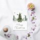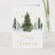 Cette élégante carte de Noël pliée en feuille d'or est un choix merveilleux en cette période de fêtes. Le design comprend des illustrations d'aquarelle verte d'arbres forestiers et de flocons de neige. La police de script de calligraphie moderne ajoute une élégance moderne à cette belle scène de Noël d'hiver.