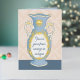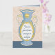 Une carte d'anniversaire pour l'amant antique, le chasseur vintage et le marcheur de magasin d'Éthrift, l'écriture intelligente et amusante se moque doucement de l'âge avancé de la personne tout en leur disant combien ils sont inestimables pour vous. Véritable feuille métallique brillante ajoute une élégance luxueuse à ce vase à fleurs antique en bleu poudreux sur une table bleue cornflower devant un arrière - plan de papier peint à fleurs damassé.