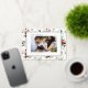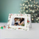 Joyeux Noël! Envoyez vos salutations chaleureuses à votre famille et à vos amis avec cette carte photo de Noël personnalisable. Il dispose d'un motif de couleur aquarelle. Personnalisez cette carte de Noël en feuille d'or en ajoutant vos détails. Cette carte de Noël botanique est disponible en d'autres couleurs et en carton.
