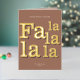 Prêt pour vous à personnaliser, ces cartes de Noël simples et modernes Fa la la la no en feuille d'or pliée photo comprennent votre nom et aideront à répandre la joie des fêtes! Ces cartes de Noël minimalistes modernes sont faciles à customiser et les véritables touches de papier doré ajoutent élégance et raffinement. Le design minimaliste de la typographie présente des tons terre d'un brun brun mocha et bronzé chaud, des lettres audacieuses dans une élégante feuille d'or avec une ombre tombante foncée et un modèle de texte en bas pour votre nom et l'année. Chaque carte de vacances pliée Fa la la s'ouvre sur une couleur de bronzage solide et chaude avec un deuxième modèle de texte à l'intérieur pour votre texte de Noël personnalisé ou vous pouvez supprimer le message d'espace réservé si vous préférez. Ces cartes de fin de année personnalisées non photo feuille d'or en couleurs terreuses tendance de chocolat mocha et tan brun mélange de fantaisie et tradition avec design graphique minimaliste moderne pour des cartes de Noël personnalisées festives finies par vous.