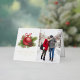 Joyeux Noël | Envoyez vos vœux de fêtes à vos amis et à votre famille avec cette carte de Noël personnalisable. Cette carte de Noël à feuilles d'or présente un ornement de Noël en boule rouge avec des baies d'hiver, des pommes de pin et des aiguilles de pin. Personnalisez-la en ajoutant vos propres détails. Cette carte de Noël photo est disponible sur d'autres papiers cartonnés. Les articles assortis sont disponibles.