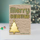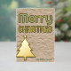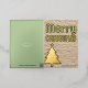 Personalize these unique rustic non-photo Merry Christmas folded cards in sage green and real gold foil printing and spread some holiday cheer. The look of textured kraft paper paired with simple modern fonts and a single minimalist Christmas tree evokes a feeling of modern rustic or upscale modern country farmhouse. MERRY CHRISTMAS in earthy sage green is outlined in real gold foil as is the tree with a star on top while the font for your name at the bottom is in a darker shade of green. These folded personalized gold foil holiday cards open to reveal a background of sage green and much lighter green Christmas tree silhouettes with a text template on the right in darker green for your custom holiday greeting.