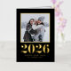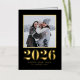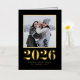 Envoyez vos nouveaux souhaits à votre famille et à vos amis avec cette carte personnalisable de Bonne Année. Il présente une typographie classique avec un arrière - plan noir. Personnalisez cette carte de nouvelle année en feuille d'or en ajoutant vos détails. Cette carte photo Nouvel An est disponible en d'autres couleurs et en carton.