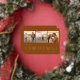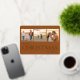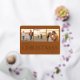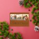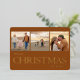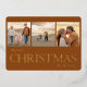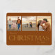 Carte de vacances en cannelle avec feuille d'or. Photos en collage. Arrondie.