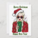 Carte de vacances fille magnifique chapeau de Père Noël