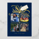 Carte de vacances photo bleu marine pour aider à apporter la nouvelle année et rester en contact avec la famille et les amis. Un cadeau avec 4 photos sur la couverture et un véritable ruban de feuille d'or, arc et étiquette avec l'année.