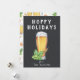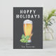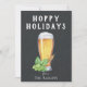 Verre à bière peint, houblon et blé sur tableau noir avec motif de pub assorti au verso, carte drôle "Hoppy Holidays".