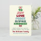 Joy Love Peace Giving and Kindness - merveilleux sentiments pour les salutations de vacances. Lettres feuilletées modernes en forme d'arbre avec une étoile brillante sur le dessus. Les couleurs de Noël vintage comprennent des tons rouges, verts, bleus et roses pour une carte de vacances personnalisée. Vous pouvez personnaliser le message, le nom de famille et les noms individuels. Le dos de cette carte présente un design ondulé dans le même jeu de couleurs que l'avant de la carte.