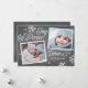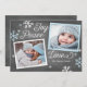 Cette carte de vacances 2 photos moderne présente joie, paix et amour avec des flocons de neige dessinés à la main sur un faux arrière - plan de tableau. Ajoutez une photo et un message personnalisé au dos pour en faire votre propre. Sélectionnez une forme découpée ou du papier texturé pour une touche spéciale supplémentaire.