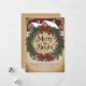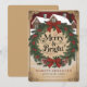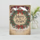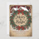 Cette "Merry & Bright Holiday Card" est un design charmant et élégant qui incarne l'esprit de la période de Noël. La carte présente une couronne magnifiquement illustrée ornée de branches de pin vert luxuriantes, de baies rouges vibrantes et de pinecones dorées. Un riche arc rouge trône au-dessus de la couronne, ajoutant une touche de sophistication et de chaleur. L'expression "Merry & Bright" est élégamment scénarisée au centre, exprimant des souhaits sincères pour une saison de vacances joyeuse et lumineuse. Sous la couronne, le texte ludique "MARPPY SHCIDAYS CIOTTAGE CORD" ajoute une touche fantaisiste, tandis que "THES FALTS & ANOT PINER TOORN" renforce le charme vintage du design. L'arrière - plan présente une scène d'hiver cosy avec une maison enneigée, avec cheminées et lumières chaudes, évoquant un sentiment de confort et de nostalgie. Le cadre doré orné autour de la carte ajoute une touche d'élégance, ce qui le rend parfait pour l'envoi ou le don pendant la saison de Noël.