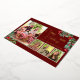 Carte festive Joyeux Noël avec des espaces pour 4 photos. Les cadres photo marron et vert laissent les images ressortir sur le fond marron rouge. 2 coins ont de la verdure avec des baies rouges pour ajouter au design festif. La police en feuille d'aluminium ajoute de la classe et donne à la carte une touche bien arrondie.