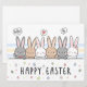 Carte de vacances Joyeuses Pâques avec lapins de Pâques et œufs de Pâques