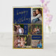Carte d'anniversaire en feuille d'or de luxe que vous pouvez personnaliser avec un nom, n'importe quel âge et 5 photos sur le devant ainsi qu'un accueil d'anniversaire personnalisé à l'intérieur. Le modèle photo est configuré pour créer automatiquement un collage photo de portraits verticaux, de paysages horizontaux et d'images au format carré. Si vous avez des problèmes avec le placement d'image, vous pouvez soit rogner votre photo à la bonne forme et re-télécharger ou vous pouvez cliquer sur "modifier à l'aide de l'outil de conception", puis cliquez sur la photo vous donnant le problème et utilisez le bouton "rogner" pour repositionner.