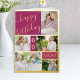 Carte d'anniversaire en feuille d'or de luxe que vous pouvez personnaliser avec un nom, n'importe quel âge et 5 photos sur le devant ainsi qu'un accueil d'anniversaire personnalisé à l'intérieur. Le modèle photo est configuré pour créer automatiquement un collage photo de portraits verticaux, de paysages horizontaux et d'images au format carré. Si vous avez des problèmes avec le placement d'image, vous pouvez soit rogner votre photo à la bonne forme et re-télécharger ou vous pouvez cliquer sur "modifier à l'aide de l'outil de conception", puis cliquez sur la photo vous donnant le problème et utilisez le bouton "rogner" pour repositionner.