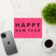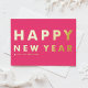 Bonne année ! Envoyez vos salutations de vacances à votre famille et à vos amis avec cette carte de vacances en feuille d'or personnalisable. Il présente une typographie audacieuse et un arrière - plan rose vif. Personnalisez en ajoutant vos détails. Cette carte New Year en feuille d'or est disponible en d'autres couleurs et cartons.